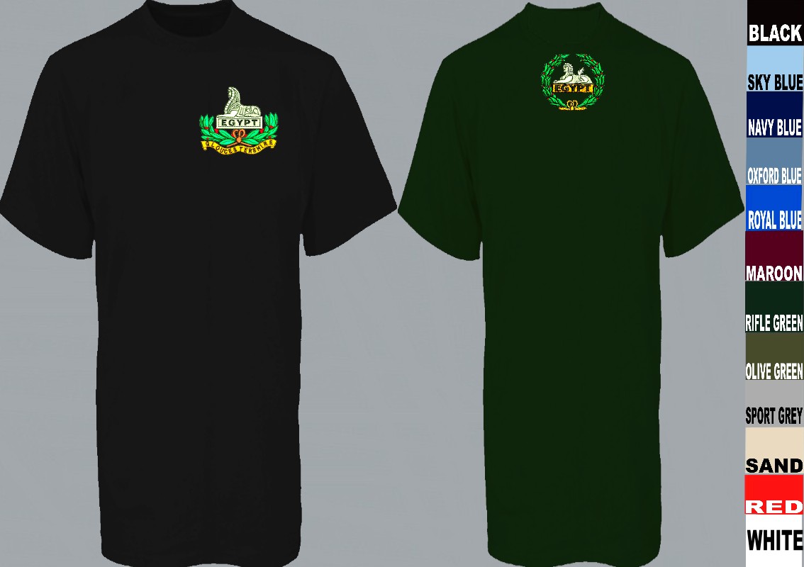 Gloucestershire Regiment T-Shirt with Back Badge Please use drop down boxes to select size, colour and sleeve length. Personalisation,Wings, TRF, DZs also available. Other Items/Colours also available please contact us for info.